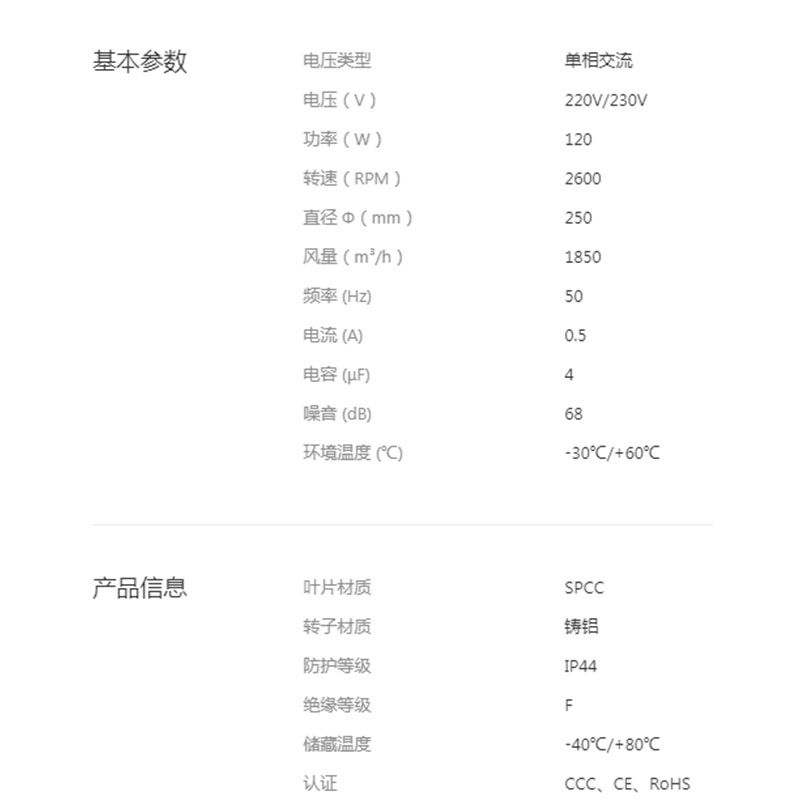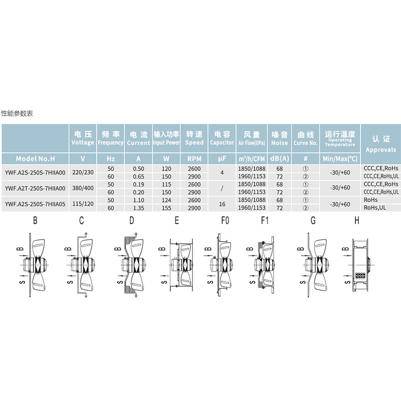 1. YWF.A2S-250S-5DIA00全新原裝防潮高效節能IP54外轉子電