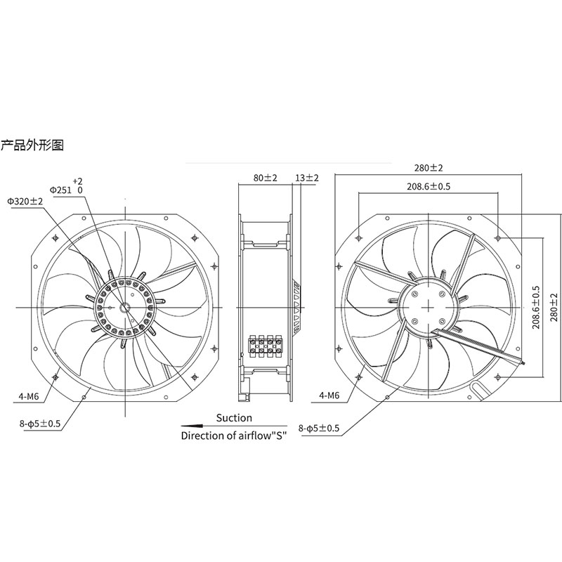 YWF.A2S-250S-7HIIA00全新大型工業專用網罩風機外轉子